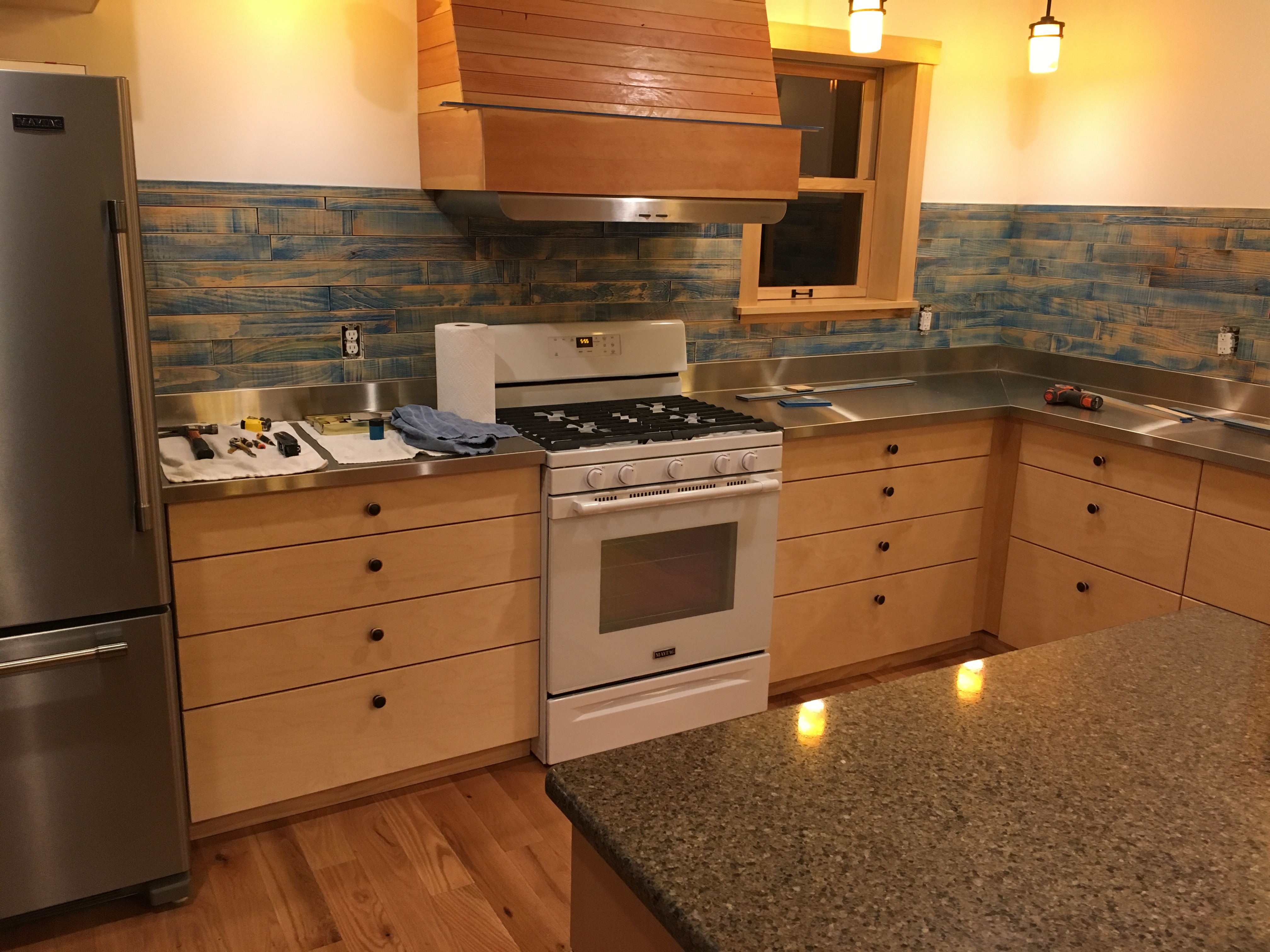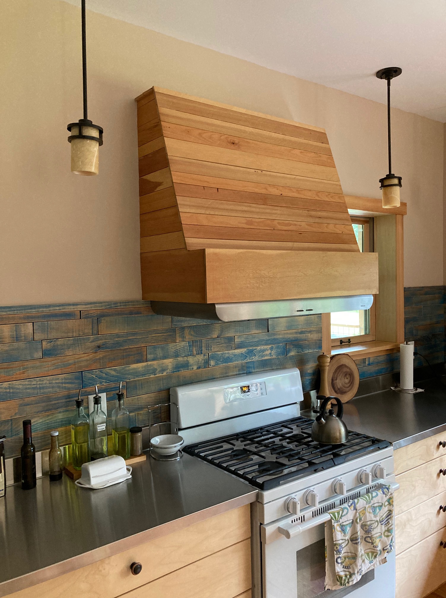 This range hood was made from Douglas Fir reclaimed from an antique door replaced on a coastal home.