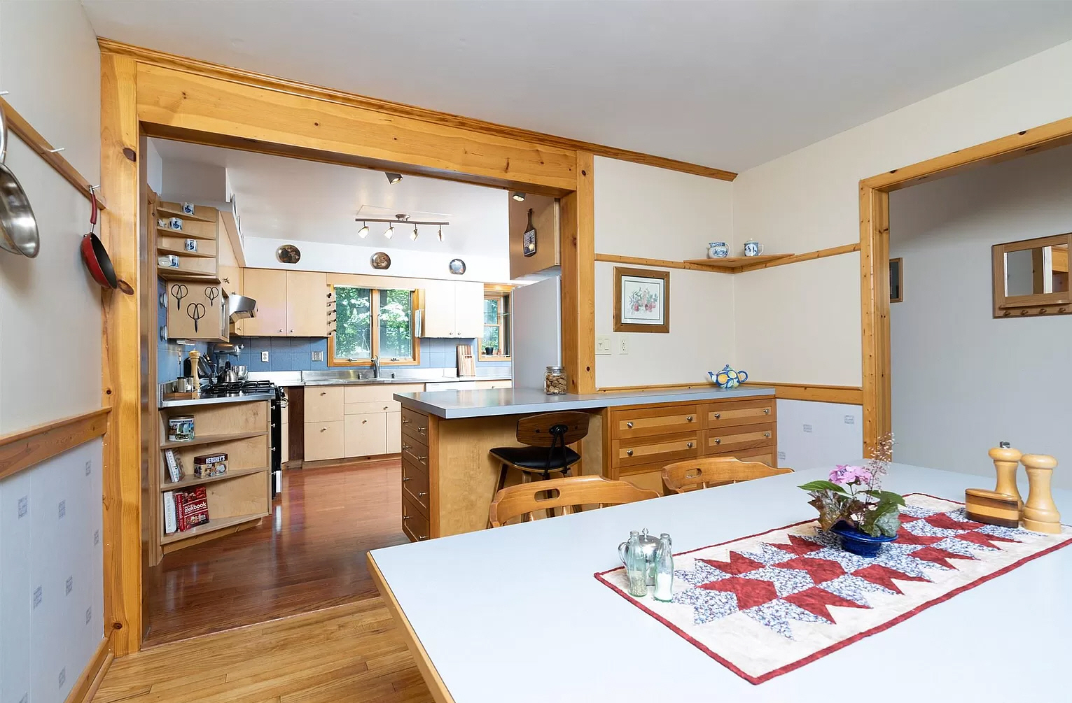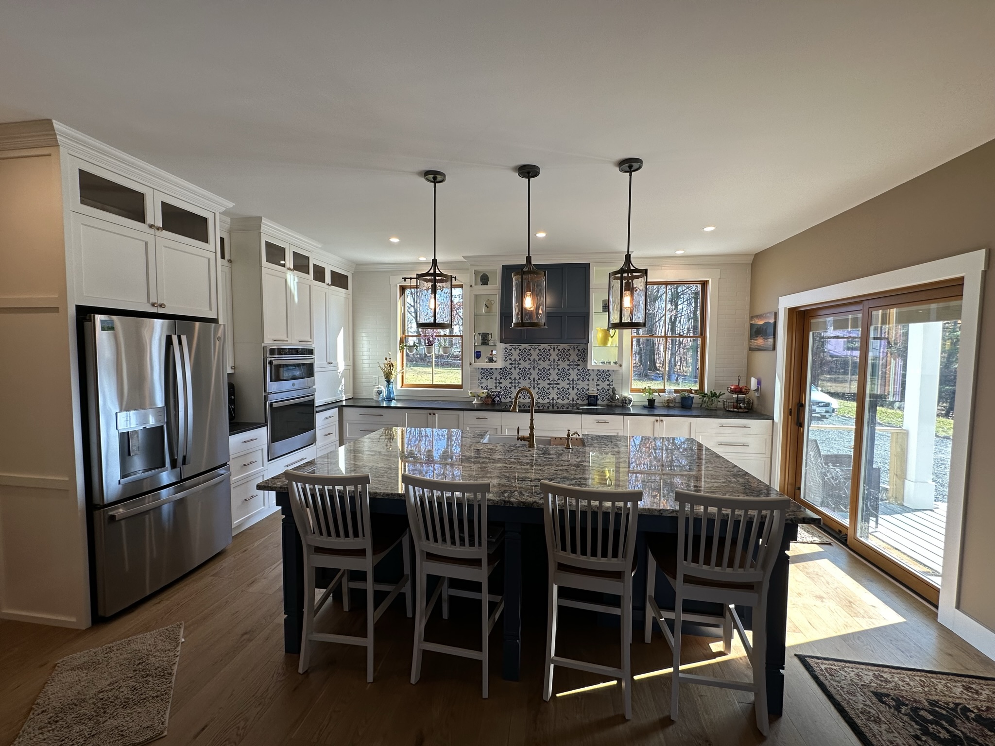 For this kitchen, our shop created a custom island countertop from locally salvaged maple. This wood came from a dead tree that was cut down to protect a nearby barn.