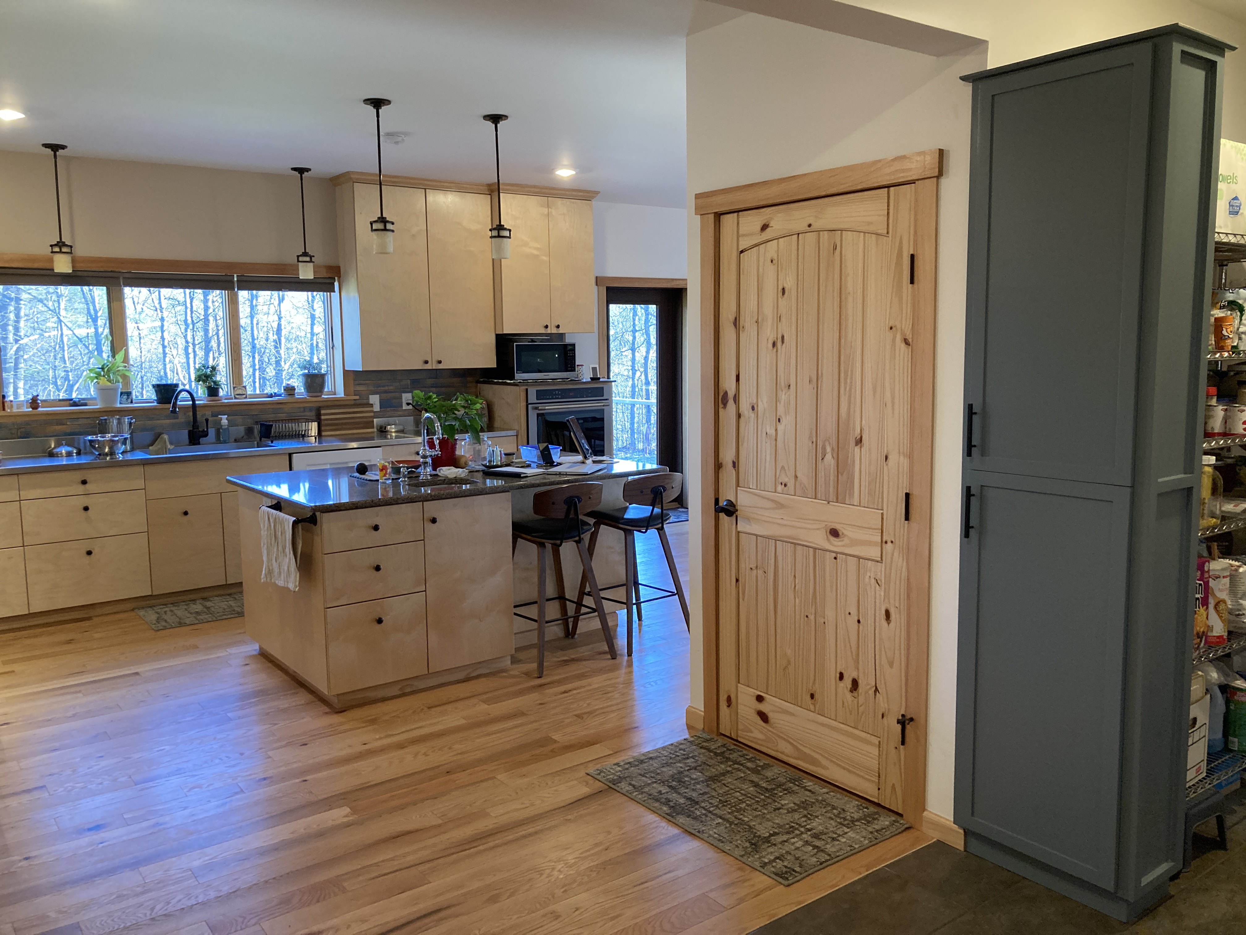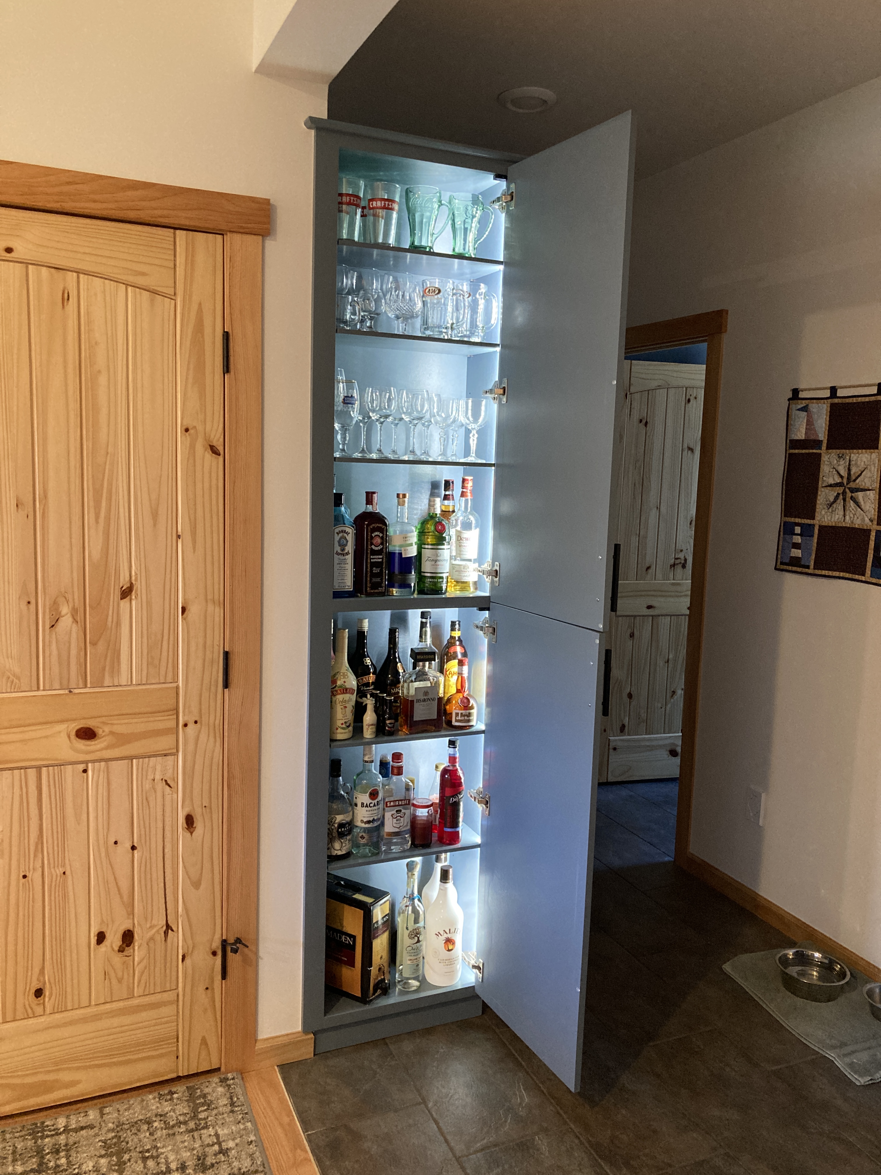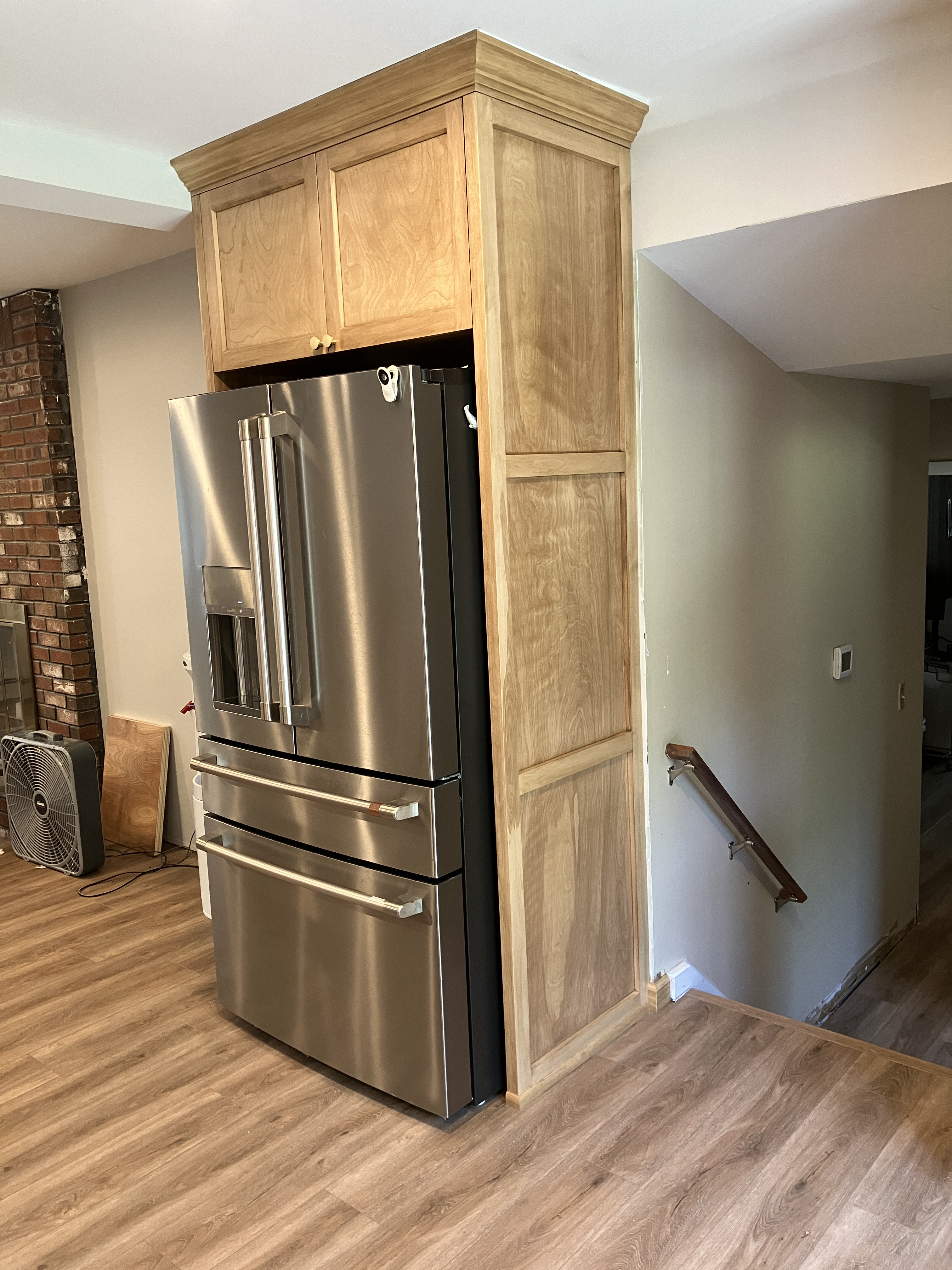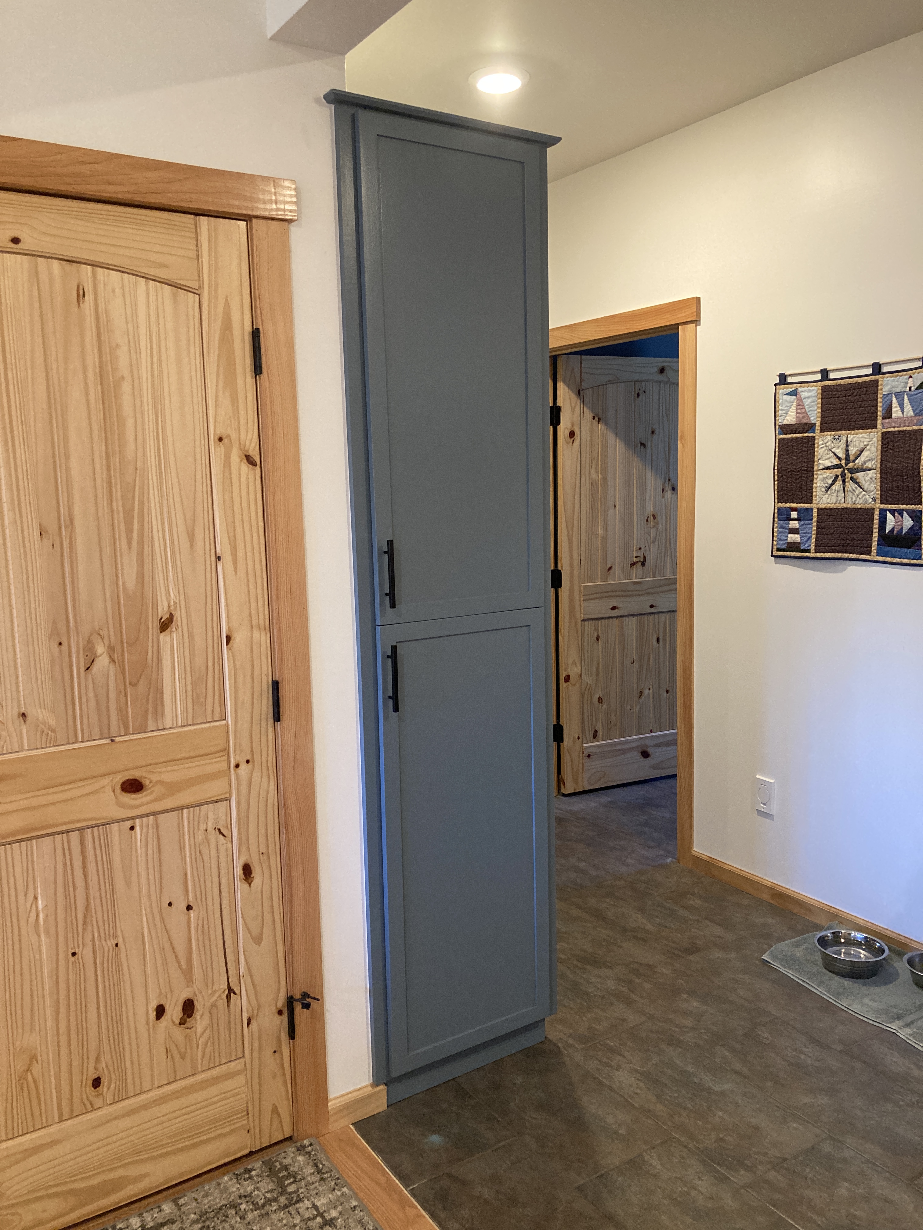 This custom pantry cabinet set was made to use cabinet doors that were re-purposed from an inherited sentimental set where the original cabinets couldn’t be re-used.