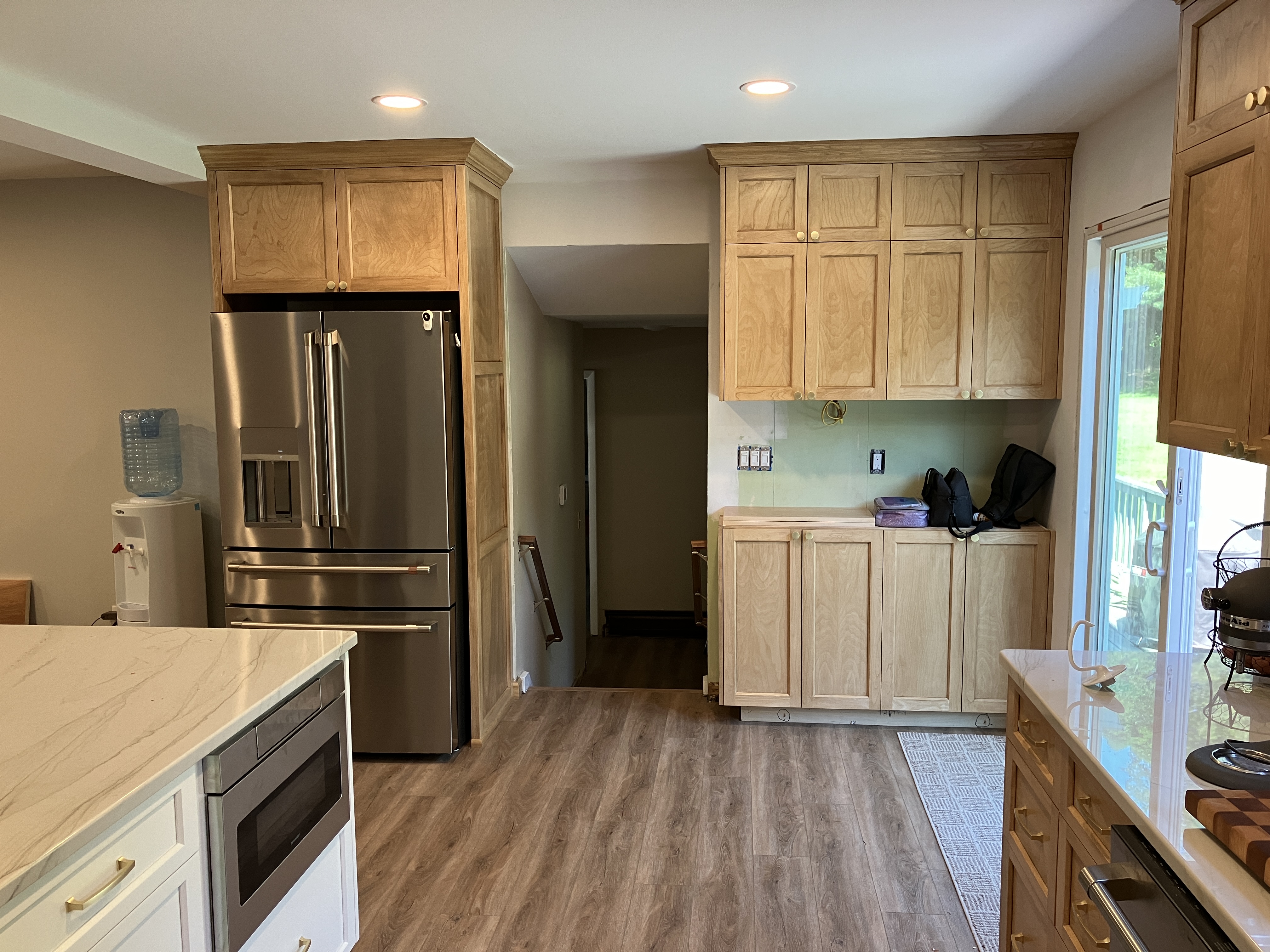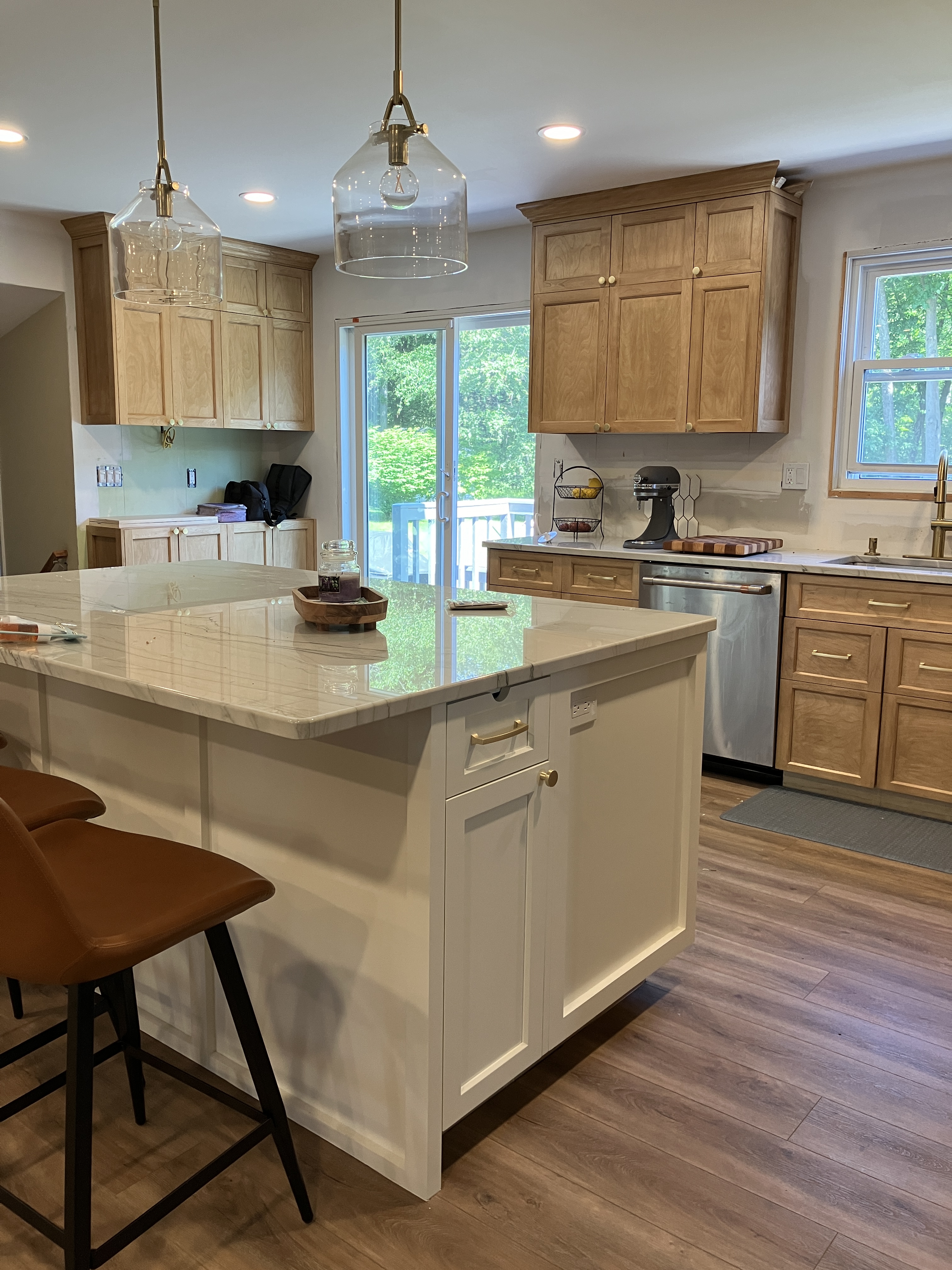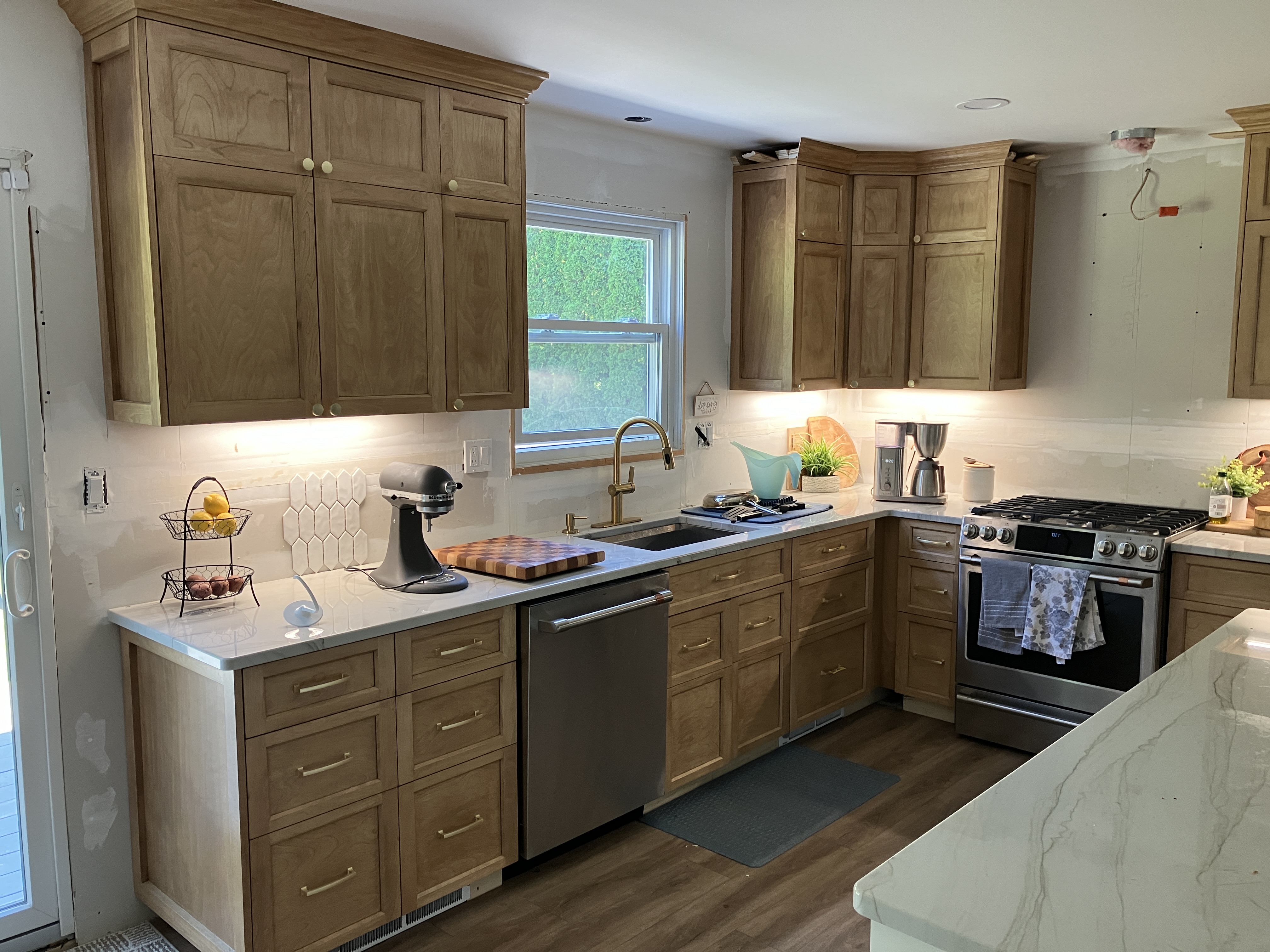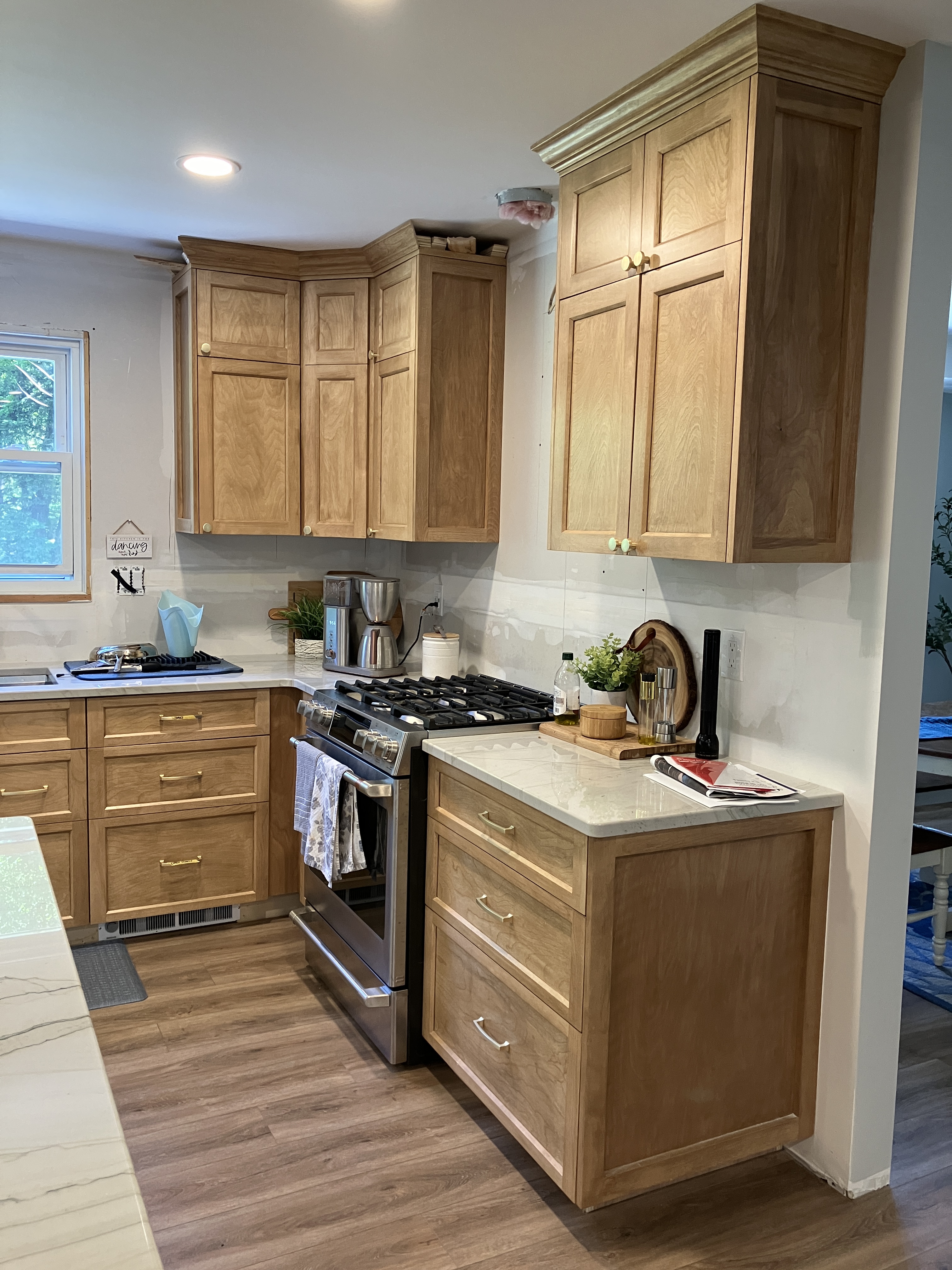 This kitchen demonstrates how we can collaborate with homeowners. The homeowner wanted to paint the walls after cabinet installation so that they could sample paint colors on the walls with the cabinets. Also, some components of the installation such as the range hood and some of the crown molding were left for later installation after the homeowner installs their tile backsplash.